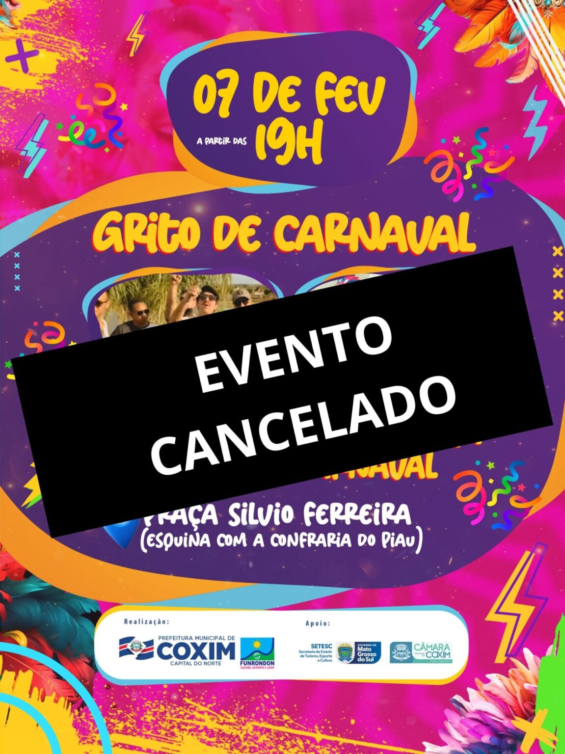 A Prefeitura Municipal de Coxim, em conjunto com a Liga Carnavalesca, anunciou o cancelamento do tradicional “Grito de Carnaval” que aconteceria neste sábado. A decisão foi tomada em decorrência das fortes chuvas e dos danos causados no município.